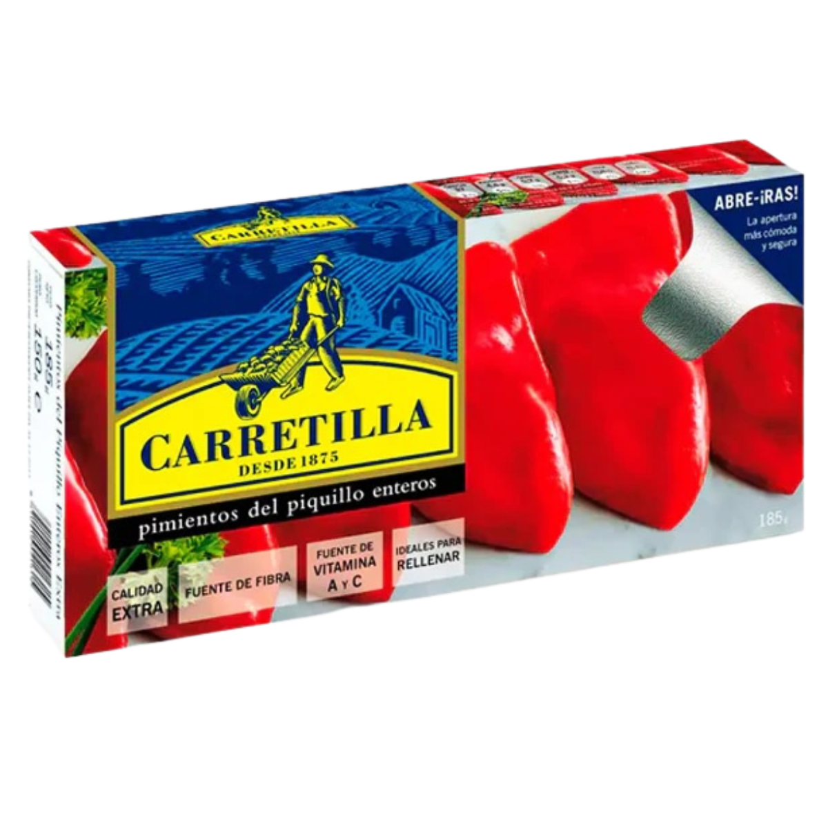 Les Carretilla pimientos del piquillo enteros extra sont un véritable délice pour les amateurs de cuisine espagnole. Avec leur saveur douce et profonde, leur texture tendre et leur léger parfum grillé, ils sont typiques de la région de Navarre, où les piments del piquillo sont cultivés avec soin. Contrairement aux poivrons ordinaires, les piquillos ont une douceur naturelle sans amertume, ce qui les rend irrésistibles sur tout plateau de tapas.