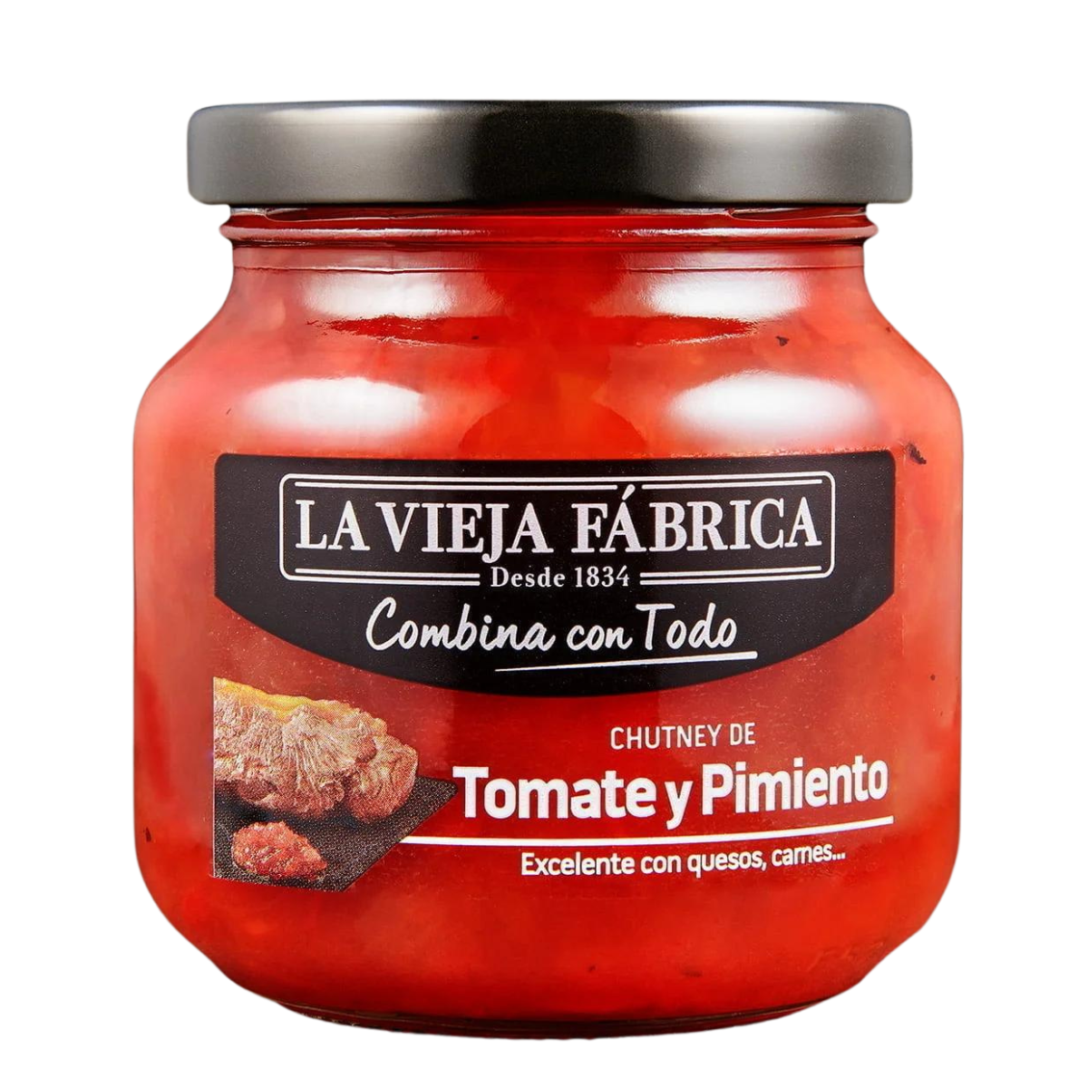 Chutney qui combine les riches saveurs de la tomate et du poivron. Cette chutney artisanale espagnole offre un équilibre parfait entre douceur et une touche de piquant, idéale comme condiment pour les plats de viande, les fromages et divers tapas. 280 g