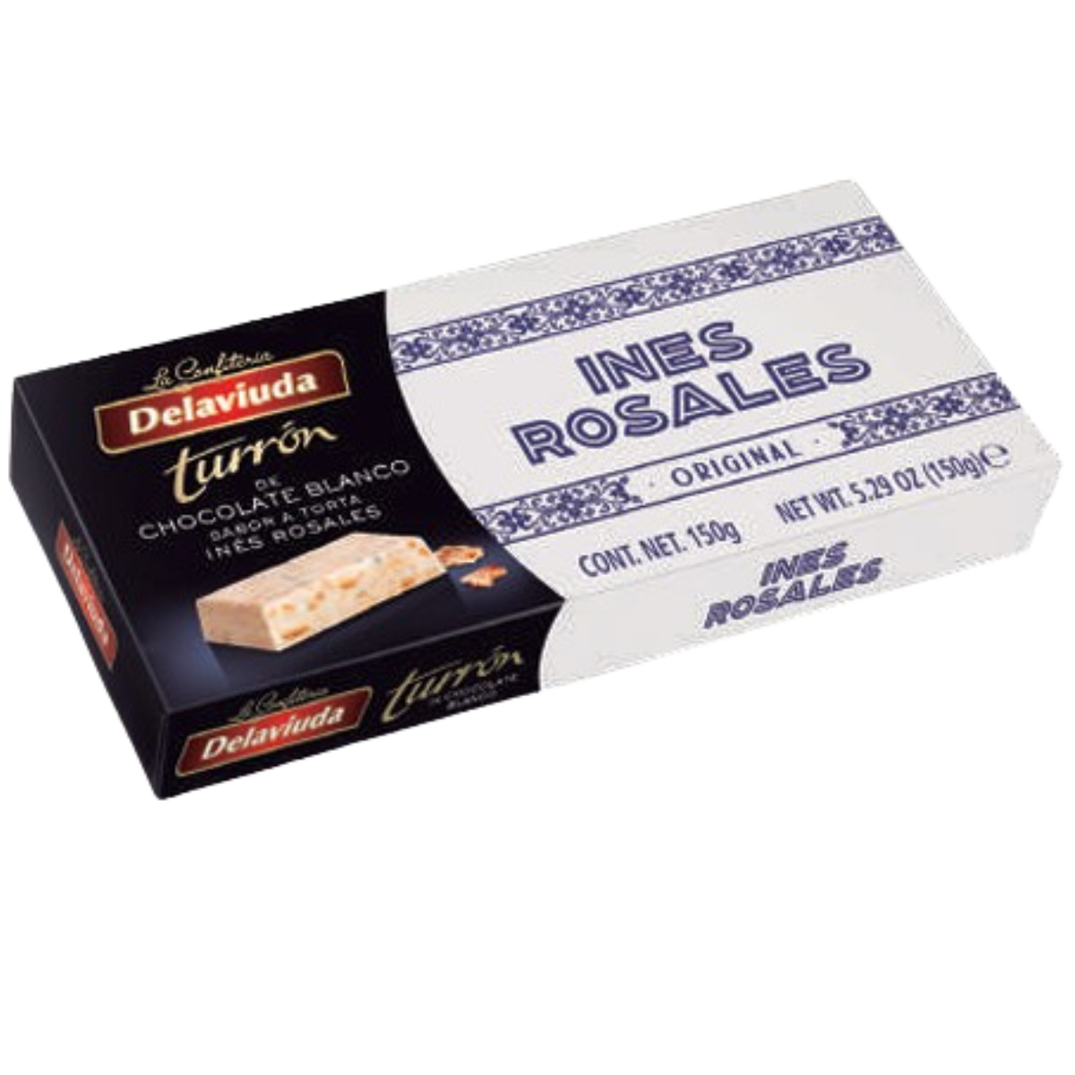 Le turrón « Chocolate Blanco Sabor Inés Rosales » réunit le fondant du chocolat blanc et le caractère unique de la fameuse torta Inés Rosales. Résultat : une version sophistiquée du nougat traditionnel espagnol, à savourer.