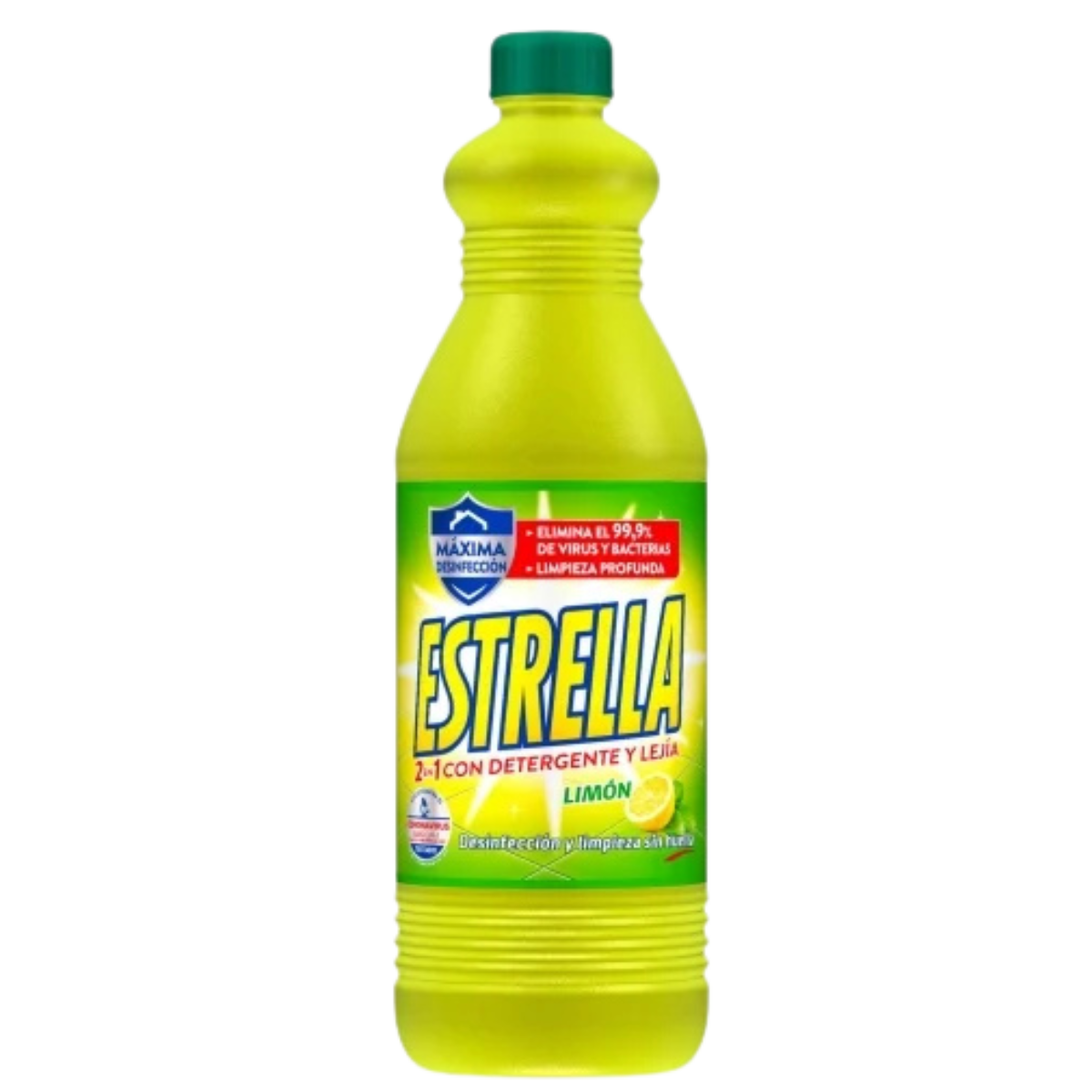 Estrella Limón est un nettoyant espagnol puissant qui combine eau de Javel et détergent pour une propreté impeccable. Sa texture légèrement épaisse assure un nettoyage en profondeur, tandis que son parfum citronné laisse une sensation immédiate de fraîcheur dans toute la maison. Idéal pour sols, cuisines, salles de bains et surfaces lavables.