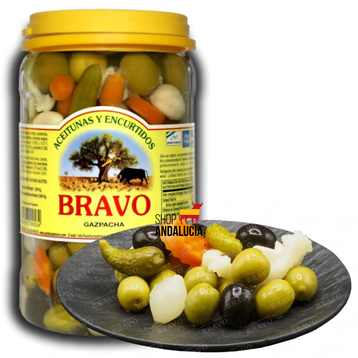 Cocktail aigre-doux composé de : olives vertes et noires, carottes, oignons, cornichons, ail doux et chou-fleur. Tous les légumes sont hachés. Ce produit est idéal pour les apéritifs, avec un beau contraste de couleurs et de saveurs. 800 gEn savoir plus