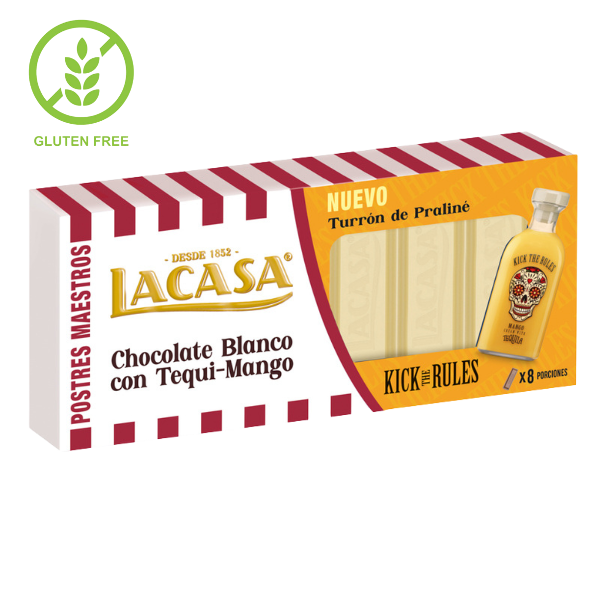 Lacasa signe un turrón praliné au chocolat blanc infusé d’une note tequila et parsemé de mangue. Texture onctueuse, douceur exotique et fraîcheur légère : un plaisir moderne à offrir ou partager.