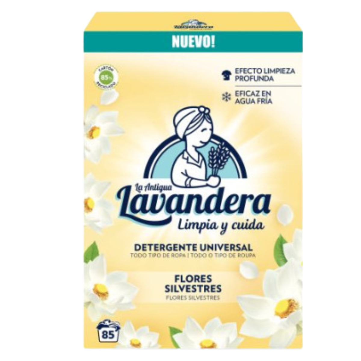 Lavandera Universal dégage une odeur fraîche et douce, légèrement florale. La poudre se dissout facilement, sans laisser de résidus. Elle convient à tous les types de textiles et de lavages, même à basse température. Résultat : un linge propre, souple et agréablement parfumé.