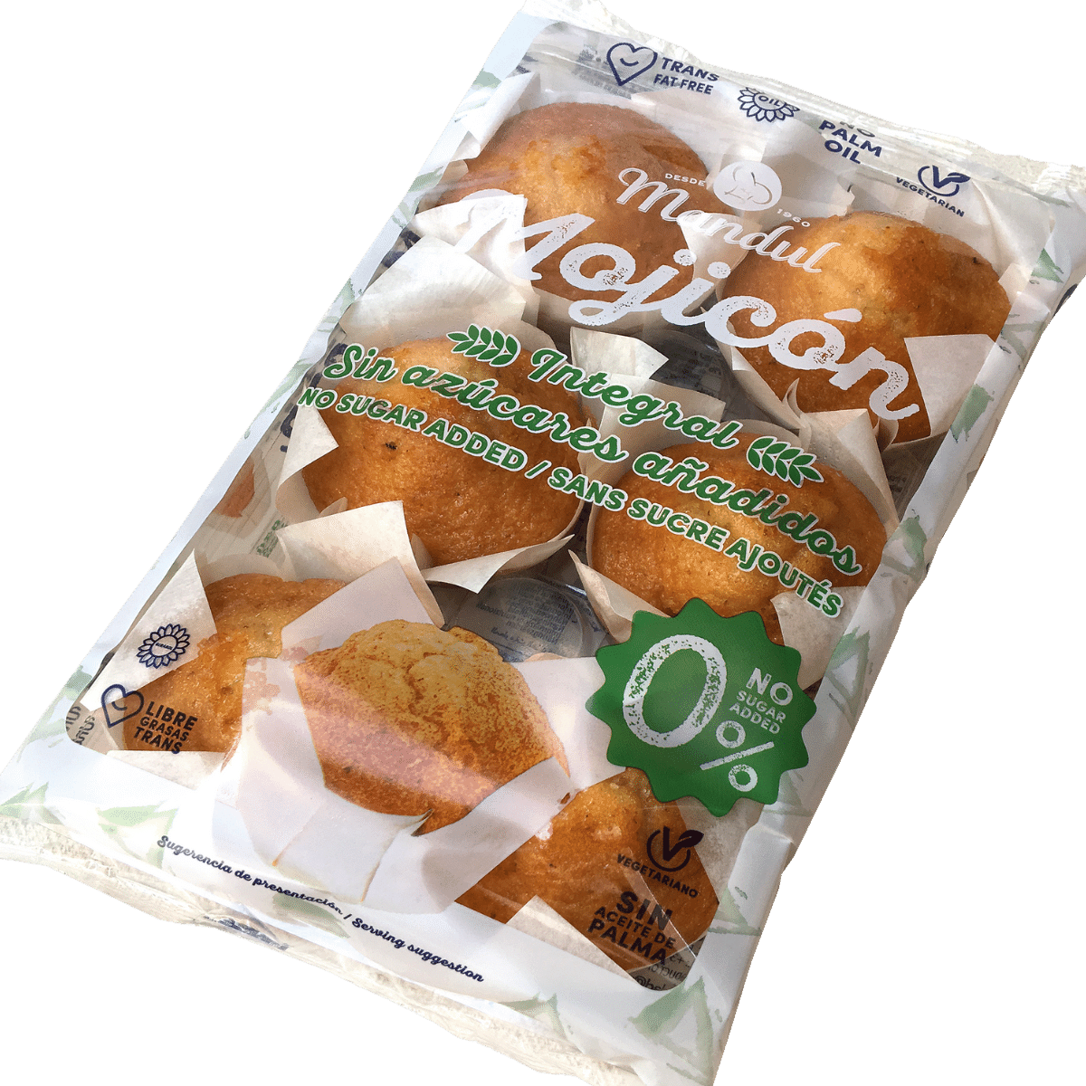 Mandul Mojicón 0% réinvente le mojicón espagnol (gros cake moelleux) en version sans sucres ajoutés : maltitol pour la douceur, fibres pour la tenue. Résultat : mie aérée, goût rond et discret — l’esprit pâtissier espagnol, en plus conscient.