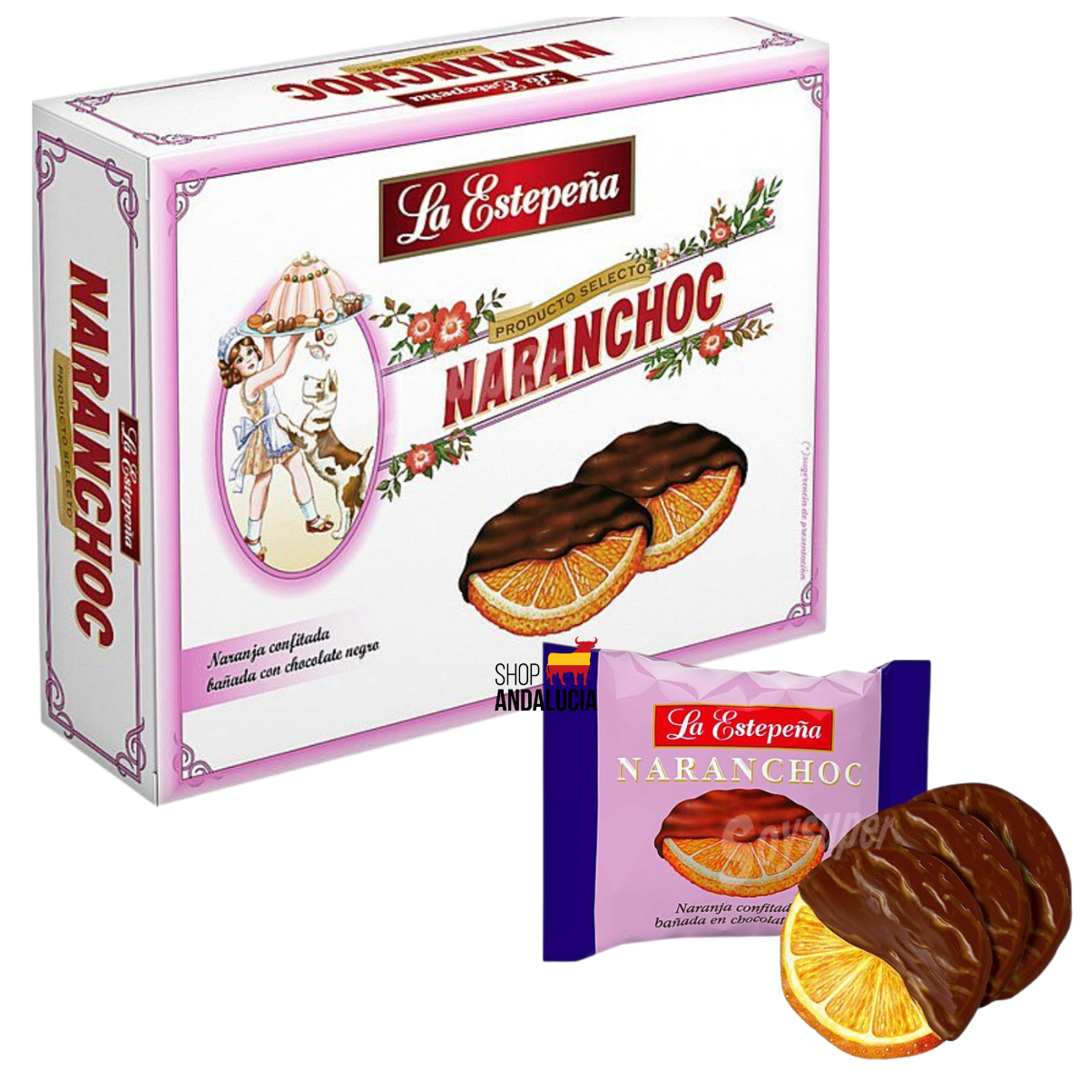 La Estepeña Naranchoc : fines rondelles d’orange confite généreusement enrobées de chocolat noir. Fraîcheur d’agrume et intensité cacao, prêtes à partager. 250 grEn savoir plus