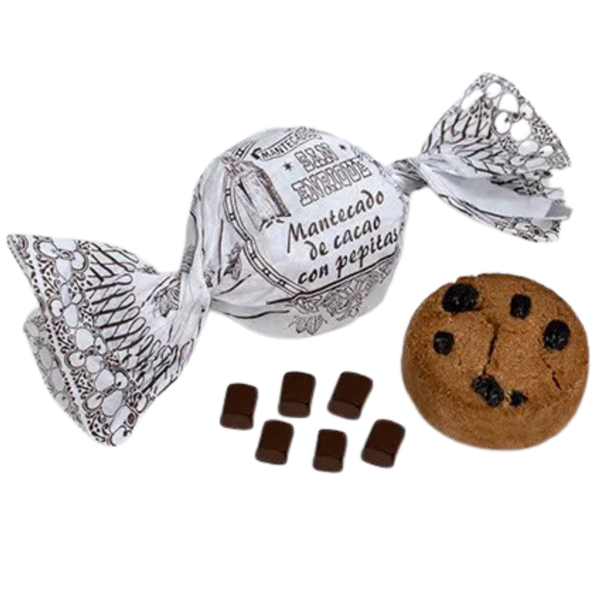 Mantecados Cacao aux pépites de chocolat San Enrique (Estepa). Bouchée courte puis fondante, cacao généreux et pépites à chaque croc. Sachet 500 g.En savoir plus