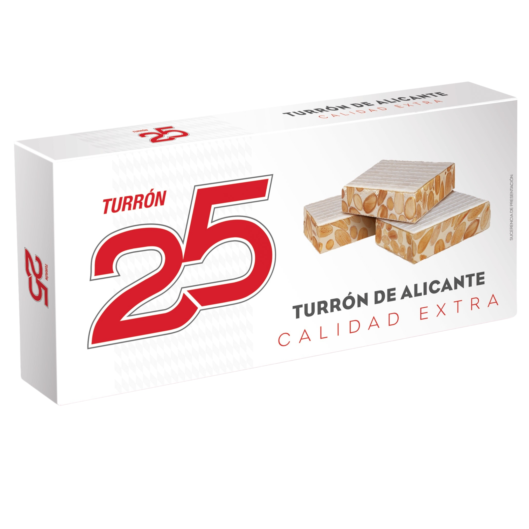 Type : Turrón d’Alicante (dur) – qualité « Extra ». Profil : très croquant, intensité d’amande, douceur de miel, finale nette. Opérateur : Jijona/Alicante, Espagne — Enrique Garrigós Monerris (Turrón 25). Conditionnement : étui carton, barre 200 g. Producteur : Enrique Garrigós Monerris. Poids net :200 g. Programme de fidélité : Spaar bij elke aankoop automatiquement des points pour des remises. Remise sur volume : disponible pour l’achat de plusieurs unités. Informations diététiques : non adapté en cas d’allergie aux fruits à coque/œuf ; recette sans lait ni gluten mais attention aux traces possibles. Expédition & livraison : commande avant 15:45 = expédiée le jour ouvrable même ; livraison gratuite dès 65 €. (BE/NL)