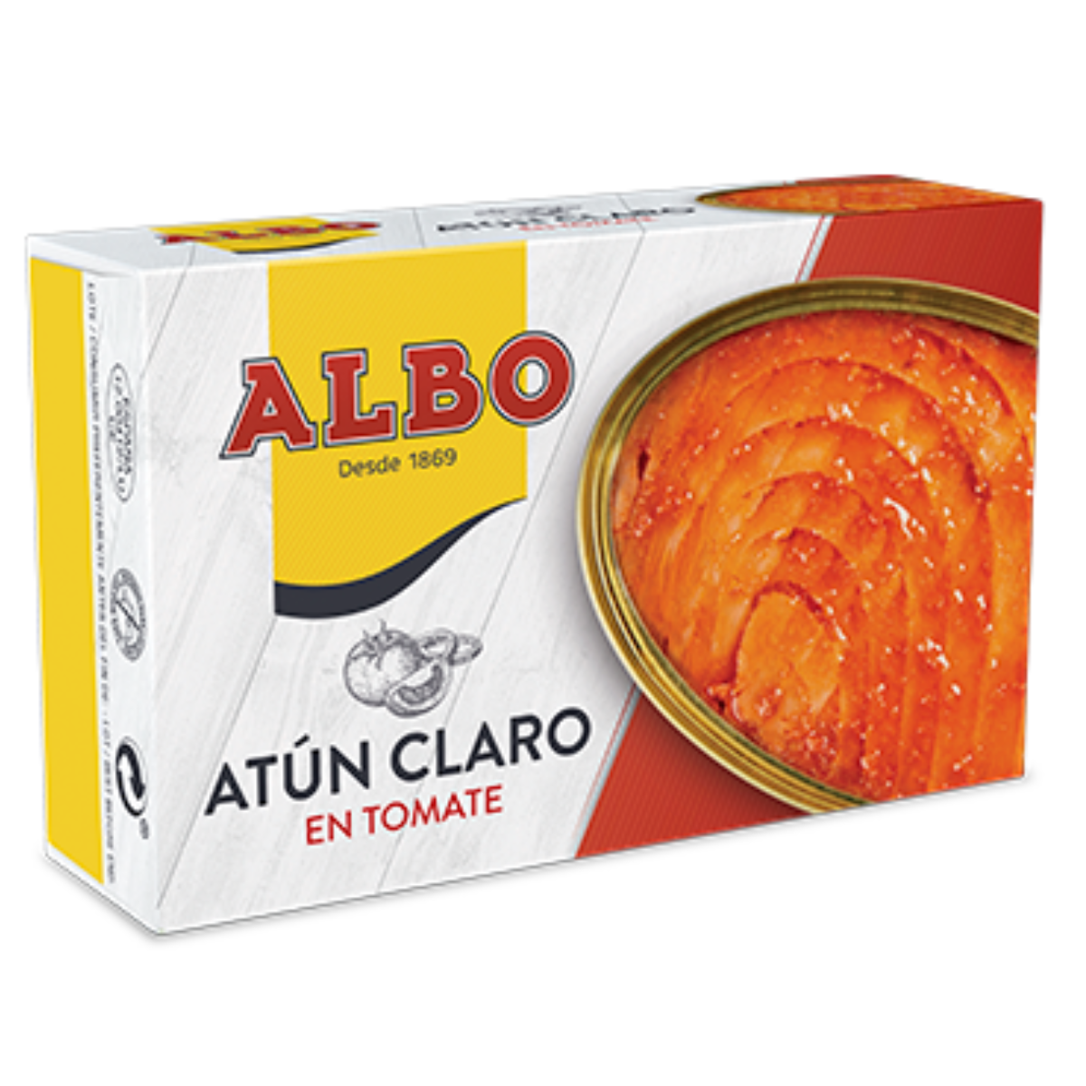 Savourez notre Atún Claro en Tomate : un mariage parfait de thon tendre et de tomates juteuses. Une expérience gastronomique espagnole en conserve, prête à être dégustée. Une délicieuse harmonie de saveurs méditerranéennes à chaque bouchée 112 gr