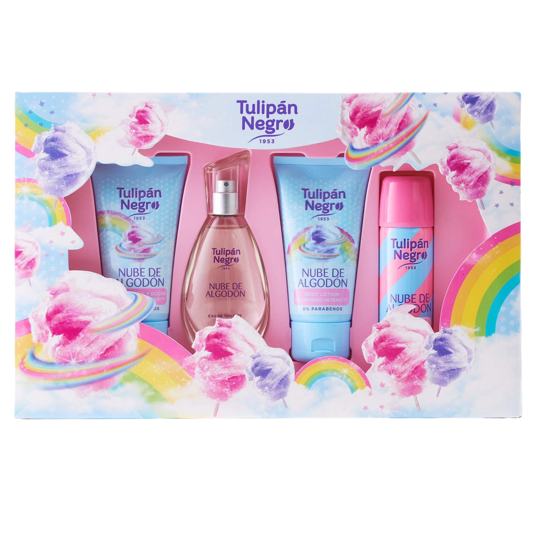 Tulipán Negro Nube de Algodón, c’est le parfum parfait si tu adores les senteurs gourmandes. Imagine une odeur de barbe à papa, de bonbons et de fruits doux, qui enveloppe ta peau comme un nuage de coton. L’odeur est sucrée, réconfortante et très “feel good”.