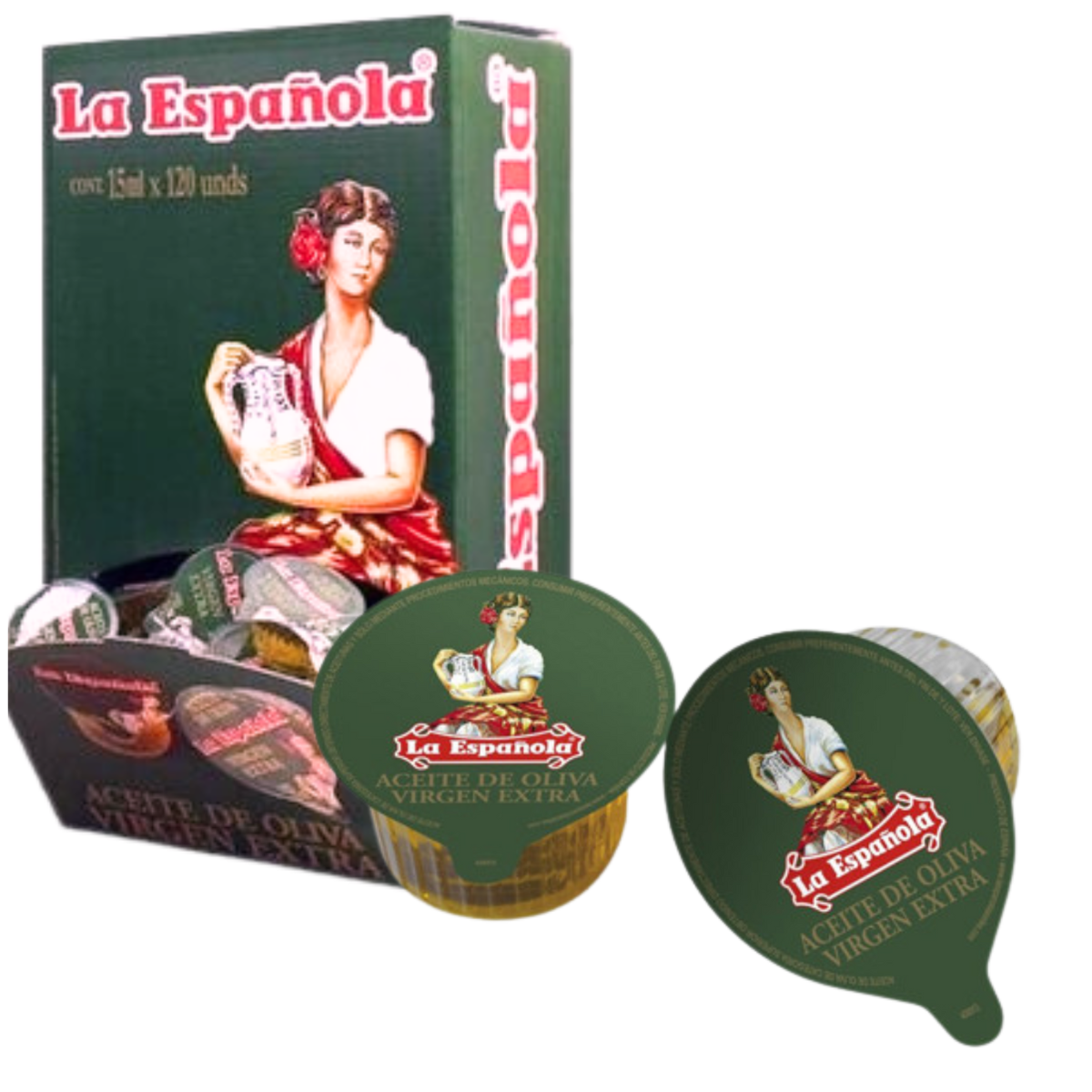 Cette huile d'olive extra vierge est disponible en emballages pratiques monodoses de 15 ml, conditionnés en boîtes de 120 unités.