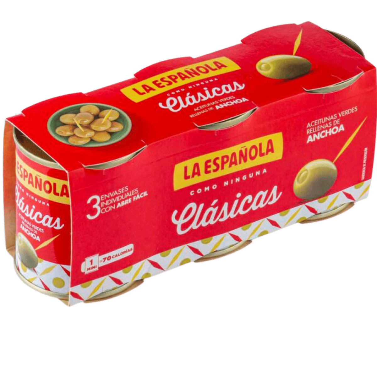 Olives vertes Manzanilla farcies aux anchois. Leur goût unique les rend parfaites pour les entrées, les canapés, les salades et tout ce que vous souhaitez préparer. Pack de 3 x 50 grEn savoir plus