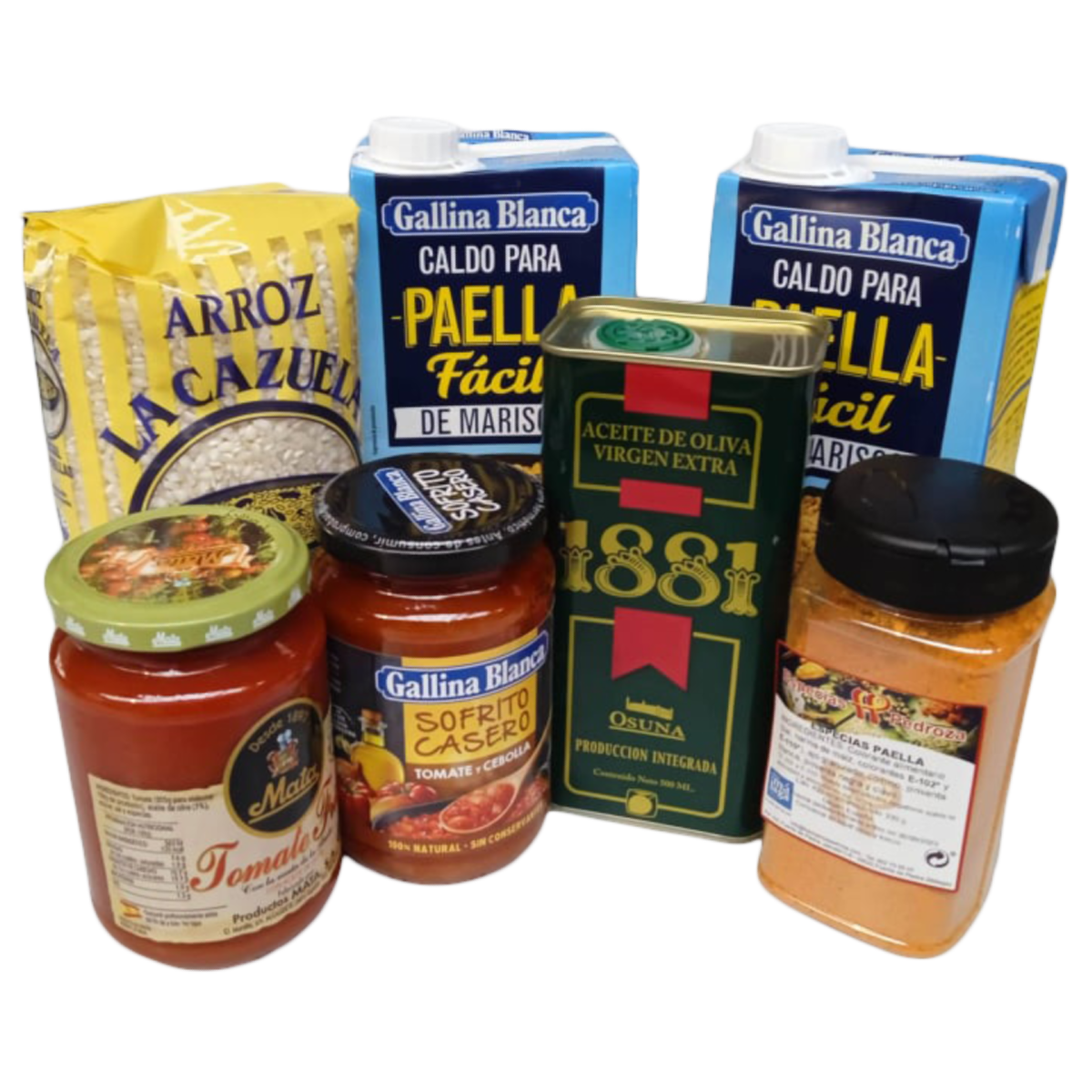 Description du produit Produits associés Recette de paella aux fruits de mer 2 x 1 litre de caldo paella 1 sofrito 1 épice à paella 1 tomate frite 1 kg de riz à paella 1 boîte d'huile d'olive Consultez la recette de la « Paella Marisco » ici. Commandez votre poêle à paella ici Livraison gratuite à partir de 65 € Commandez via un compte et bénéficiez de points de réduction Lis plus moins Produits associés