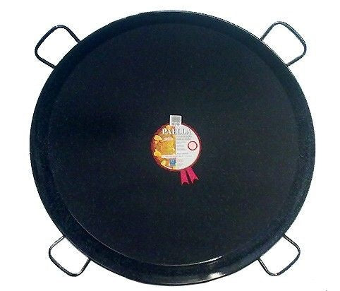 Cette solide poêle à paella de 90 cm de diamètre permet de préparer des paellas pour environ 55 personnes. Fabriquée en acier inoxydable émaillé par Garcima, entreprise familiale réputée de Valence spécialisée dans les poêles à paella depuis des générations. Compatible avec feu de gaz, feu de bois, four et barbecue.