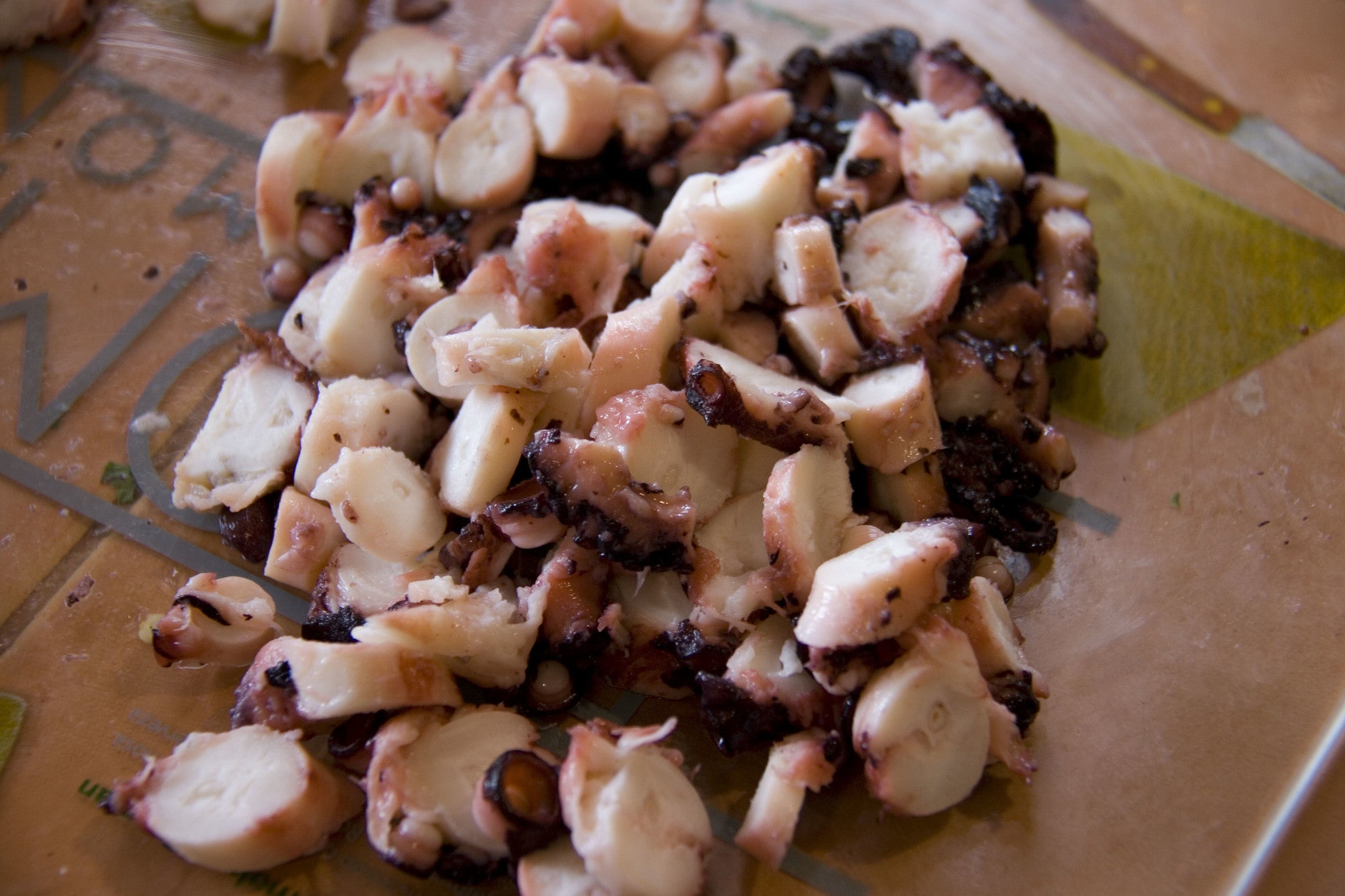 Morceaux de poulpe avec une sauce à l'ail épicée. Contenu : 110 g.