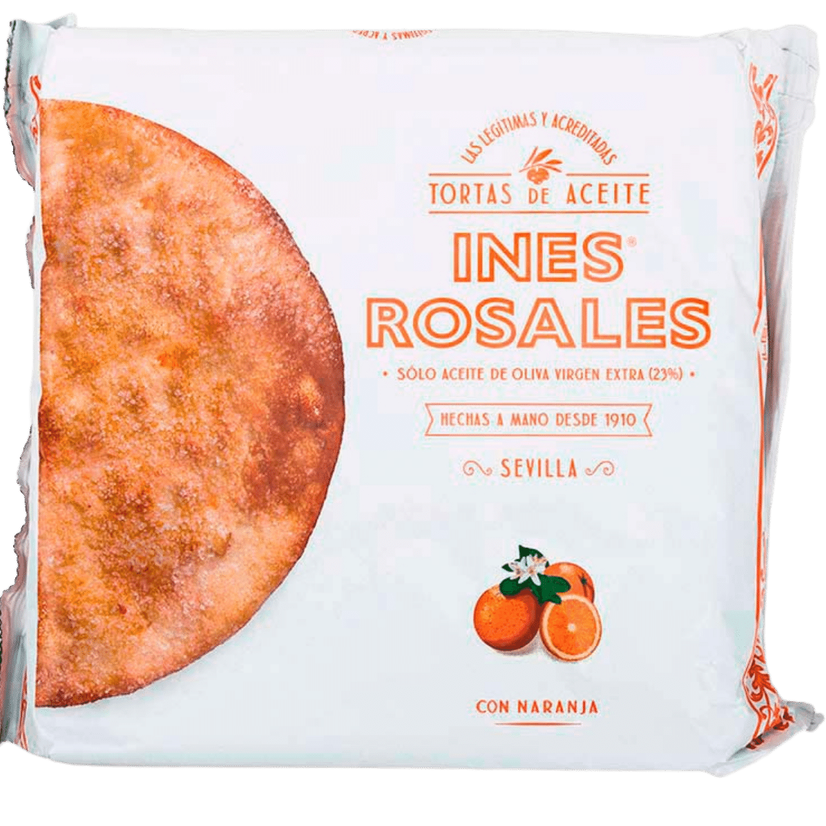 Tortas Ines Rosales à la saveur d'orange avec huile d'olive. Une délicieuse fusion d'orange rafraîchissante et de luxuriance méditerranéenne. Profitez de 4 Tortas Ines Rosales, chaque torta étant individuellement emballée dans du papier sans gras.