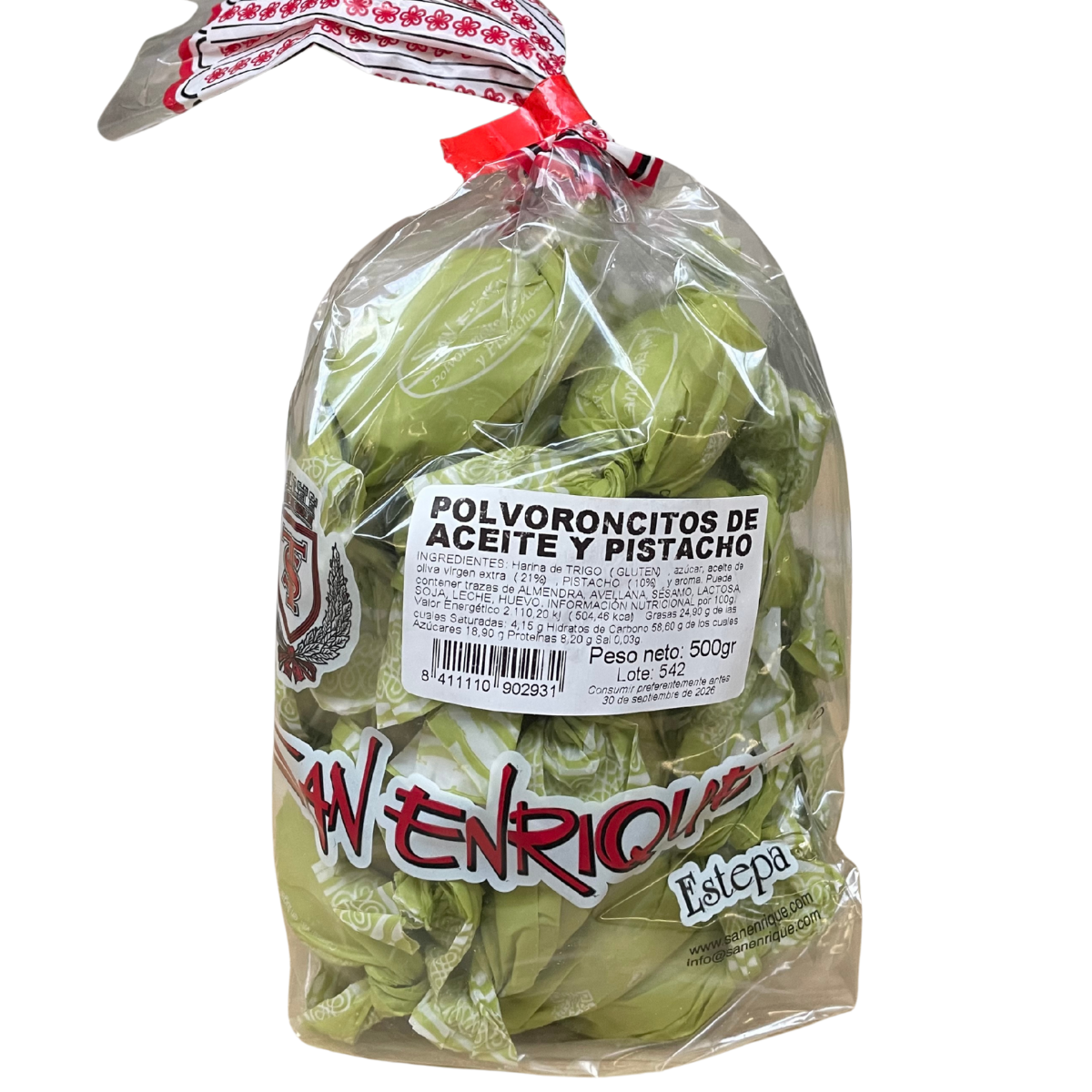 Polvorón de Aceite de Oliva y Pistacho van San Enrique combineert de klassieke kort-kruimelige, smeltende textuur uit Estepa met de frisse, ronde smaak van extra vierge olijfolie en pistache. Het resultaat is een elegante, plantaardige polvorón (zonder reuzel) met een zachte zoetheid — ideaal bij koffie/thee, als mignardise of op je zoete tapasplank. Verpakt in een zak van 500 g voor thuis, kantoor of om te delen.
