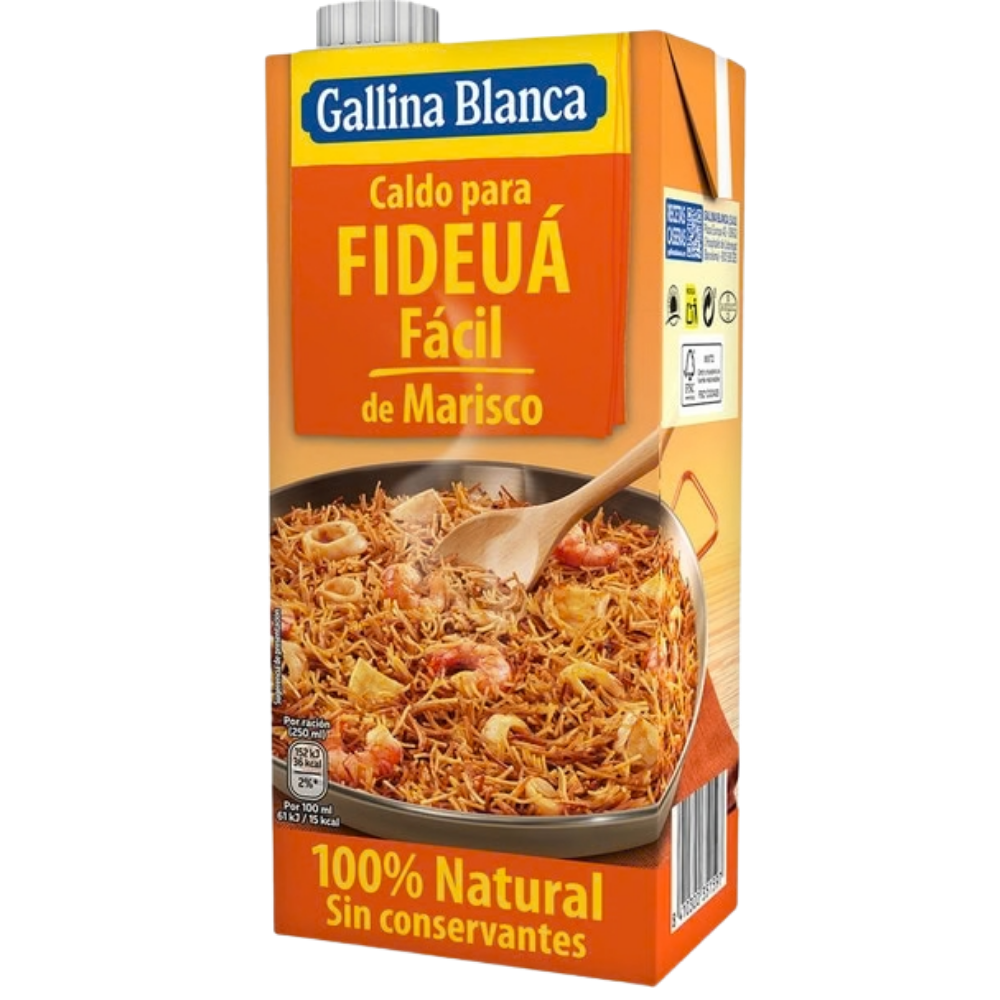 Wat dit product typisch Spaans maakt, is de eeuwenoude traditie van fideuà, een klassiek Valenciaans gerecht dat vergelijkbaar is met paella maar gemaakt wordt met korte pasta (fideos) in plaats van rijst. Fideuà is een iconisch gerecht van de Spaanse kust, vooral populair in Valencia en Catalonië, en de bouillon vormt de basis van dit geliefde gerecht. In Spanje wordt fideuà al generaties lang gemaakt volgens familierecpten, en Gallina Blanca heeft deze traditie gevangen in een kant-en-klare bouillon die de authentieke smaak behoudt. De combinatie van zeevruchten, vis, saffraan en kruiden volgens het traditionele recept maakt dit product tot een essentieel onderdeel van de Spaanse kustcuisine.